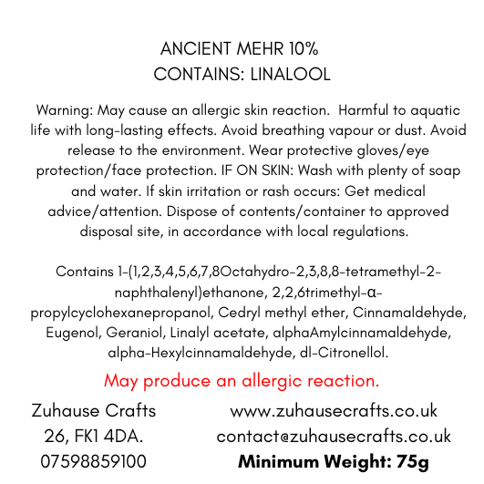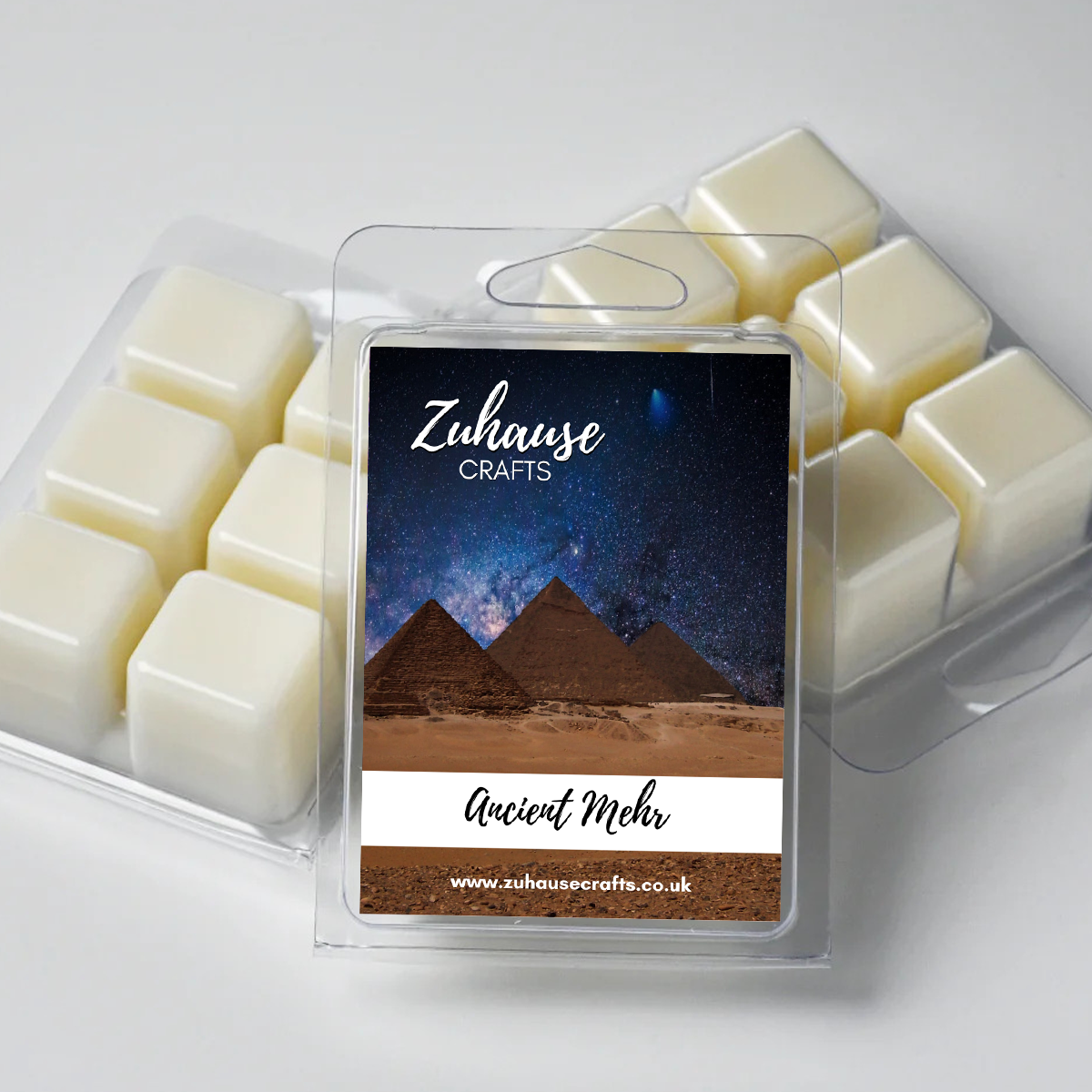 Our Ancient Mehr wax melt is a rich spicy citrus fragrance with sparkling top notes of orange and lime alongside warming notes of cinnamon, clove and ginger, leading to a lush floral heart and resting on a base of luxurious amber, precious woods and musk.