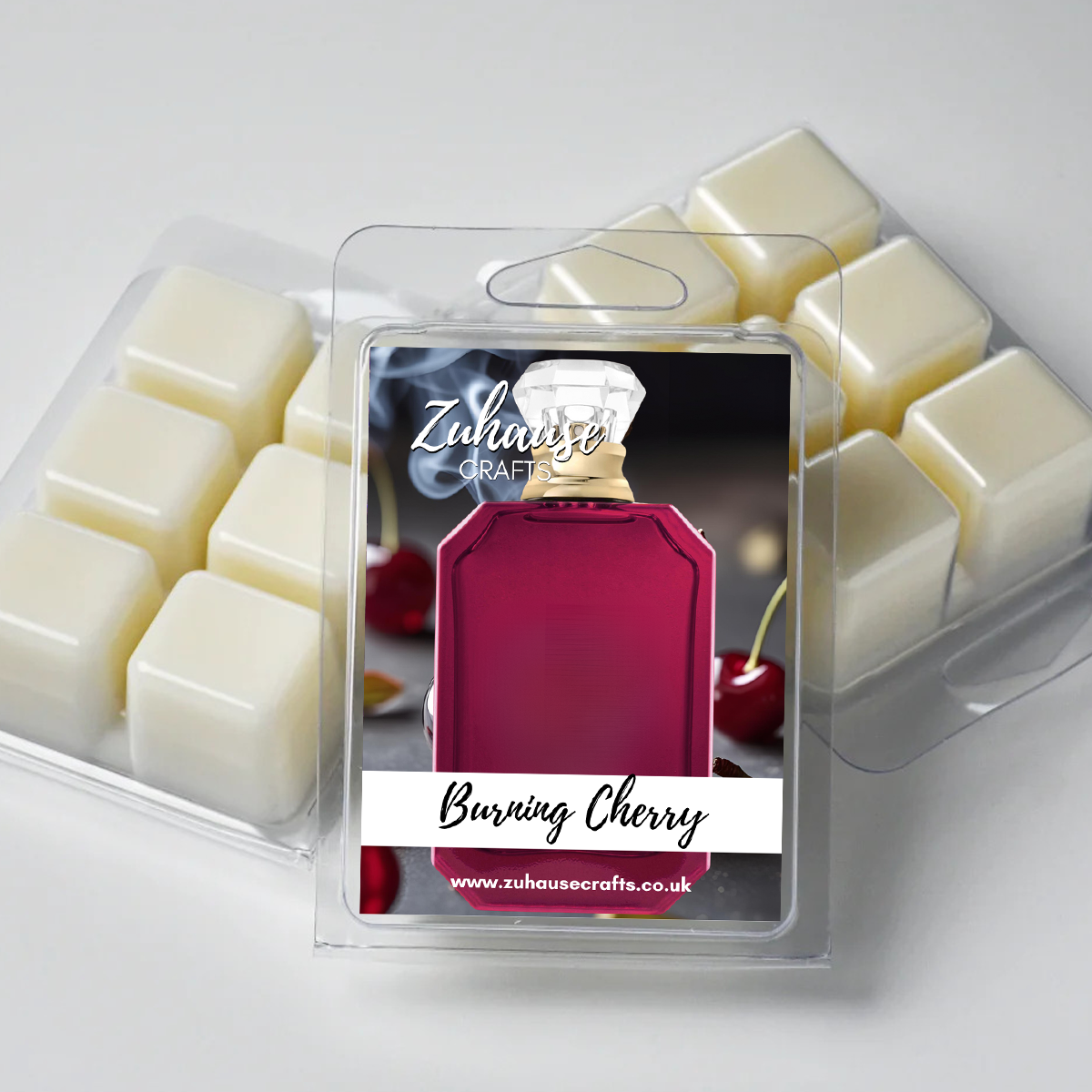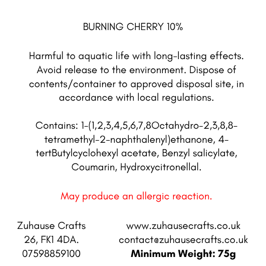 Our Burning Cherry wax melt is a rich woody fruity fragrance with top notes of burning cherry alongside sweet raspberry and citrus. The heart is composed with notes of damask rose, sambac jasmin and praline, and leads to base notes of precious woods, myrrh, tonka bean and musk.