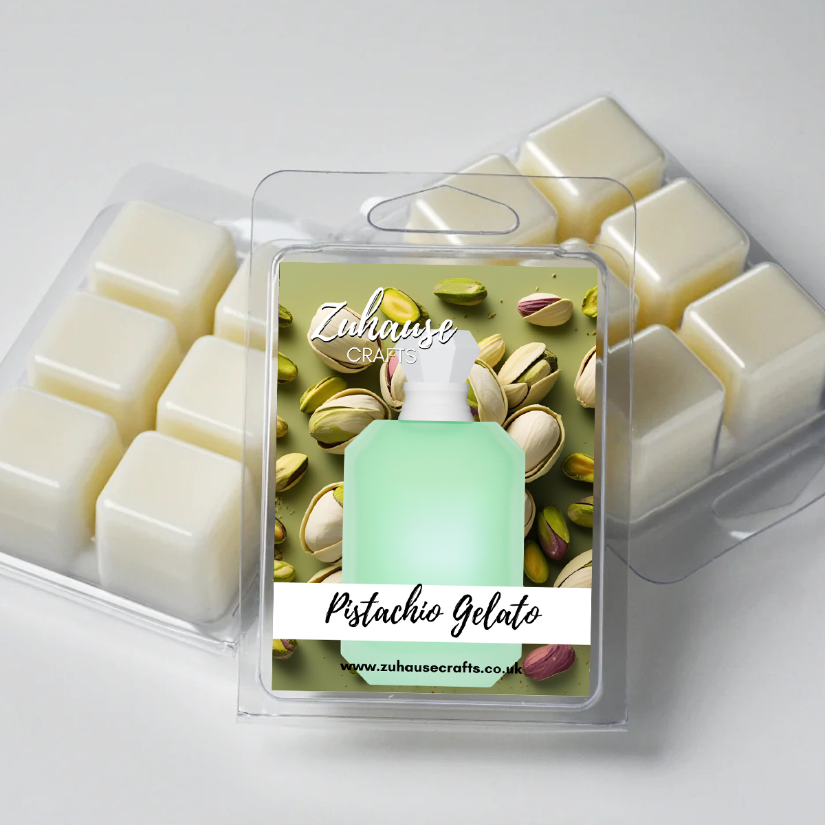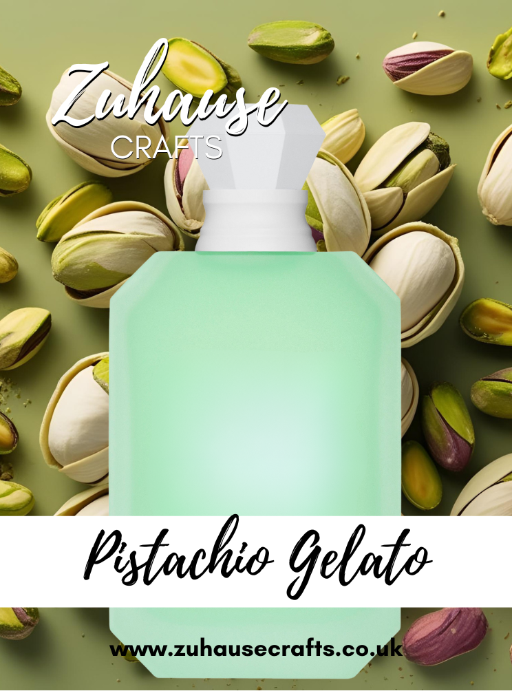 Our Pistachio Gelato wax melt opens with delicious pistachio ice cream with roasted hazelnuts, topped with sweet rum sauce, fluffy marshmallows, cotton candy and a dusting of sherbet with an elegant floral touch.